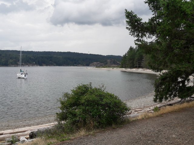 This long spit on Quadra Island creates a superb bay for anchoring, kayaking, camping, walking, beach combing and swimming. Water temp 67 degrees. I wore a wet suit anyway.