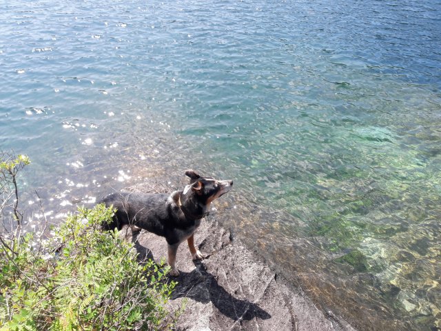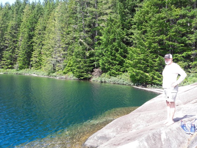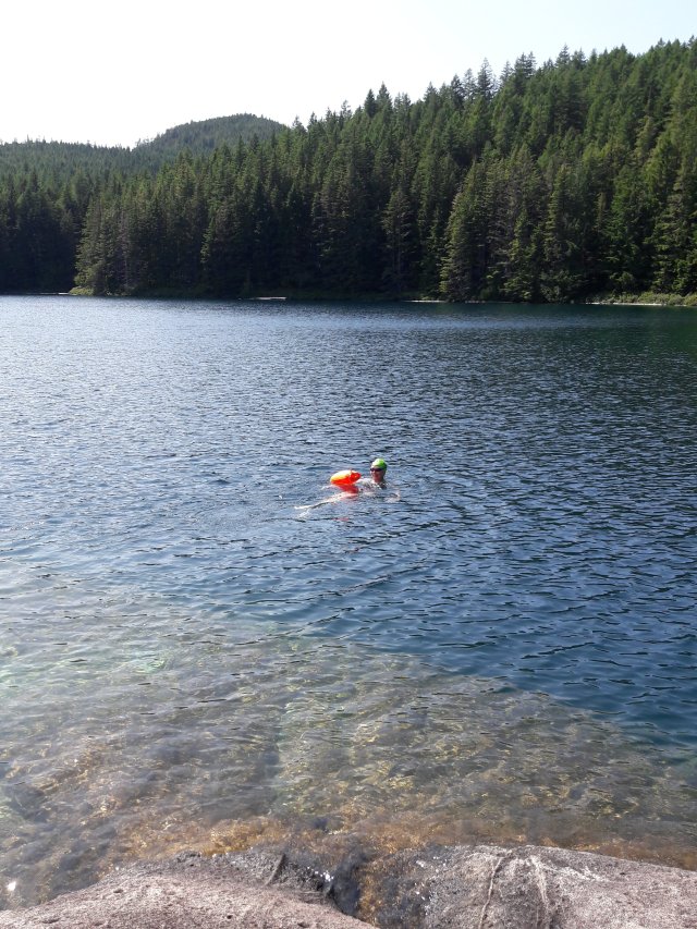 Lake Newton, is a 1+ mile hike from Small Inlet or Waiatt Bay, with refreshing “warm” water swimming down a rock scramble. Even Bailey went in after a stick.