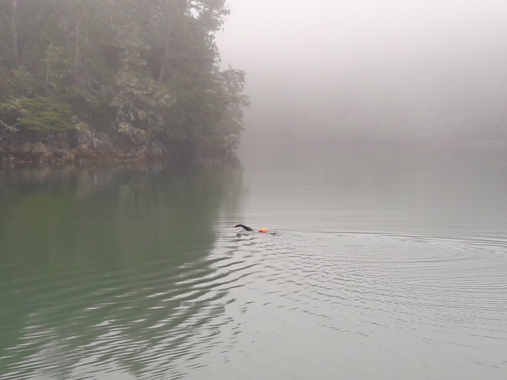 Waking in Effingham Bay to a cold, dripping fog dropped the motivation to swim to a new low. My friends back on Lake Washington texting about swimming in the lake helped me look at the positive: water calm, all to myself, mystical, Loch Ness Monsters must be friendly in such a beautiful setting.