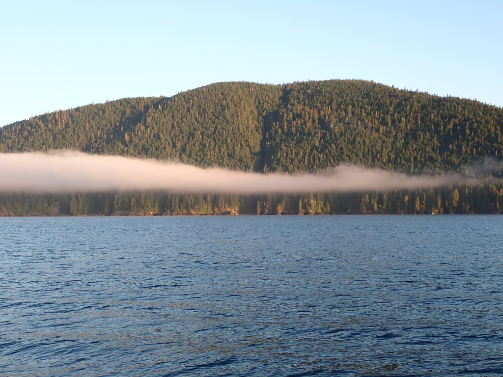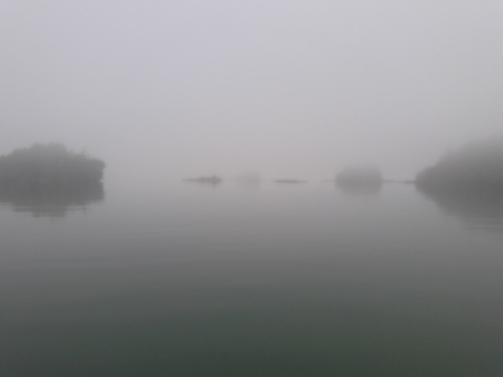 Fog in the morning at Effingham Bay. Swam around the small island and a rock to the right.