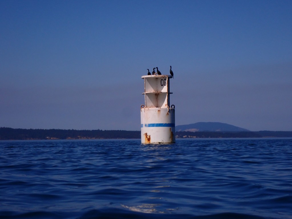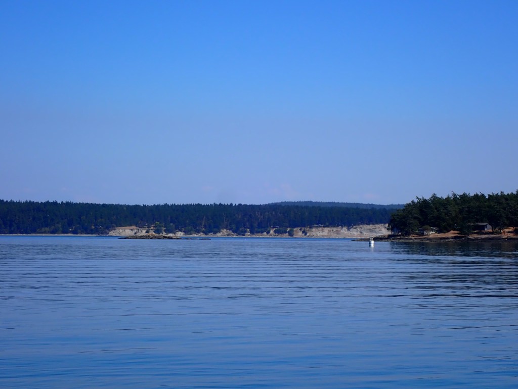 A look back after coming around the small rocky “island” to the left, past the buoy into Griffin Bay. Maybe I could swim around that island later and visit the birds and seals?