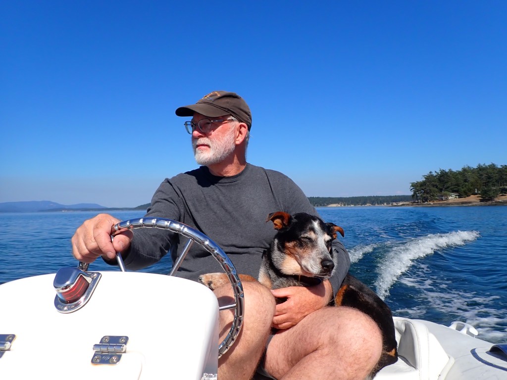 Well the tests weren’t back in 24 hours and we decided to move a bit closer to Victoria to maximize our time in Canada. Fisherman’s Bay on Lopez or Friday Harbor on San Juan Island sounded good, a bit closer, less of a straight shot across the Juan de Fuca Straits which can get pretty roley poley. The trip was pretty gentle but Bailey still had a rough time. Aceprotabs to the rescue, 1/2 a tablet. An hour later, he doesn’t care who picks him up, it’s all good.