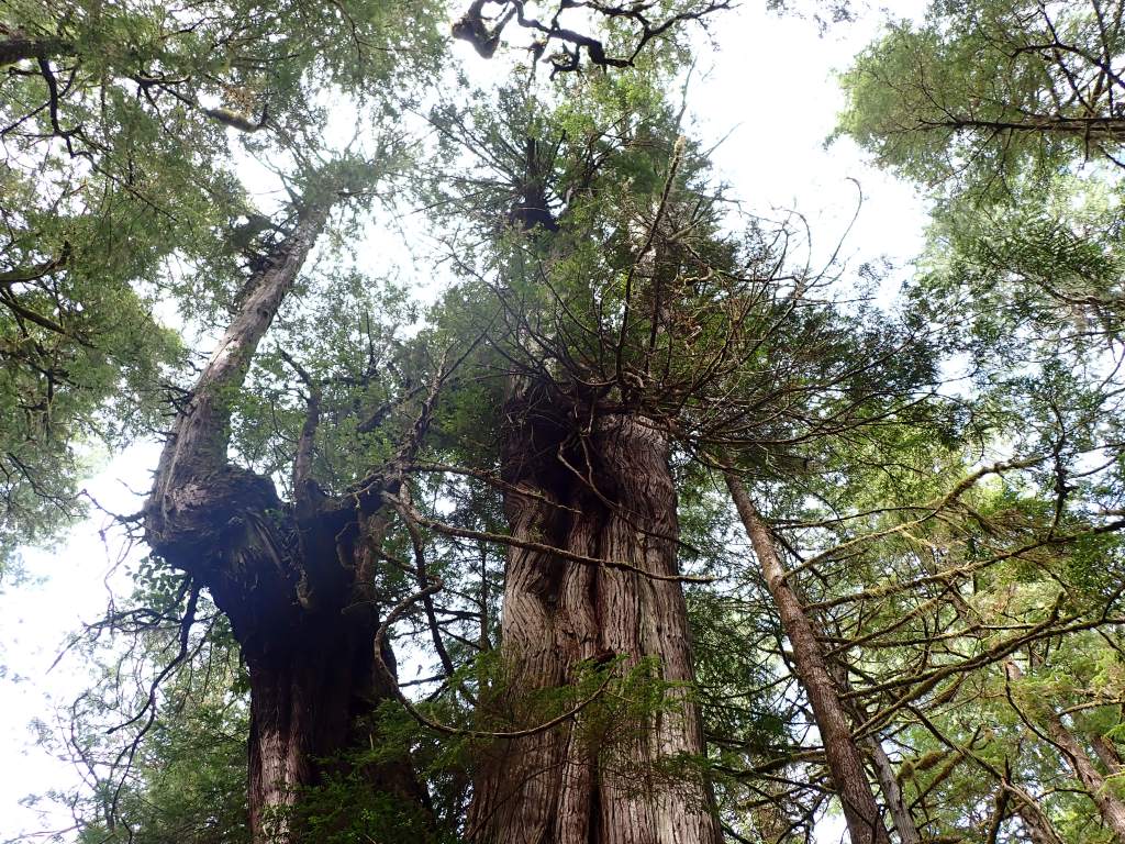 The forest is lovely, devoid of any thorns, or bothersome bugs, only slippery logs and hidden holes to mind. Some huge mother trees give a glimpse of an old growth forest. This is the only island in the Group that has a fresh water lake. It looks accessible from the East side of the island but not from this trail which leads to a midden. Now strewn with tree trunks, it is a lovely beach also for tide pooling.