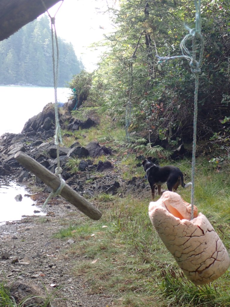 After 7 hours of this as the sun finally started breaking through, we reached Effingham Island , the largest island of the Broken Island Group. Its spacious bay empty, we had our pick of the best spot, close to the trail leading across the island. Ready for some land time, we launched the dinghy in search of said trail.